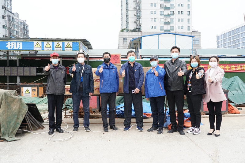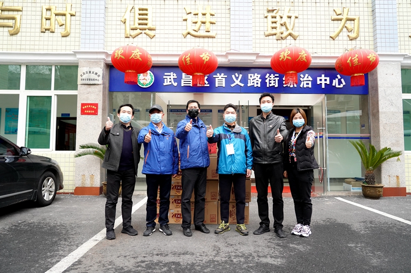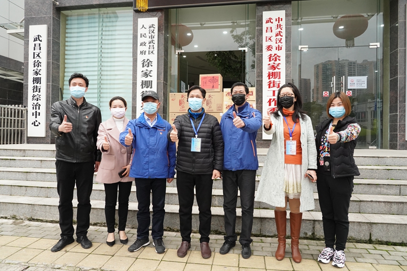 黃鶴樓街道黨工委書(shū)記劉曉明,街道辦事處主任山峰,首義路街辦事處主任李愛(ài)武,徐家棚街道黨工委書(shū)記金光偉,黨政辦副主任熊菊花代表各自單位接受物資。