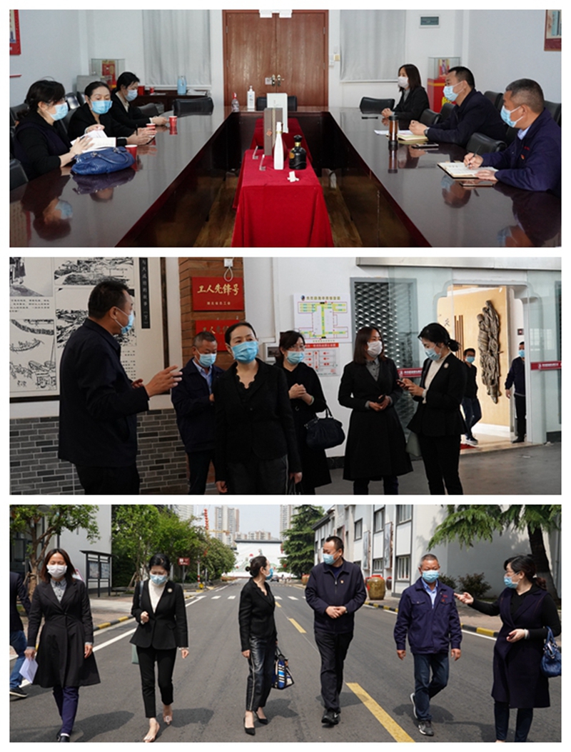 4月8日,漢陽(yáng)區(qū)政協(xié)副主席甘瓊,經(jīng)科委主任紀(jì)勤,文史委主任邵碧玲一行調(diào)研黃鶴樓酒業(yè)復(fù)工復(fù)產(chǎn)情況。黃鶴樓酒業(yè)黨委書(shū)記、董事長(zhǎng)許鵬,黨委副書(shū)記、副總經(jīng)理麻玉俠,黨委委員、總經(jīng)理助理魏國(guó)接待來(lái)訪。