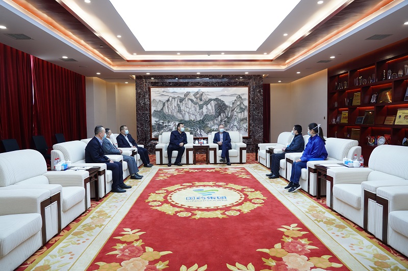4月22日,湖北省安徽商會執行會長、黃鶴樓酒業黨委書記、董事長許鵬一行慰問國藥控股湖北有限公司,并送去4萬余元慰問物資,湖北省安徽商會會長、國藥控股湖北有限公司董事長馬占軍,國藥控股湖北有限公司總經理助理王海平,湖北省安徽商會秘書長范德明接待訪問。
