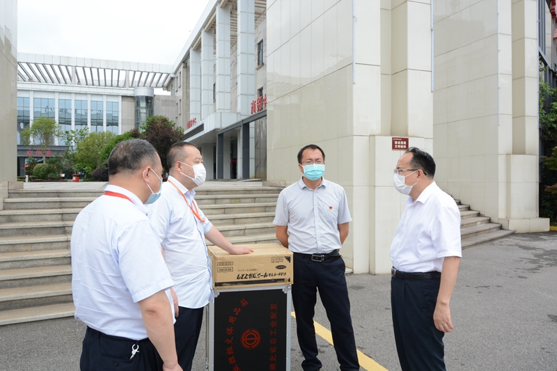 田運(yùn)雄一行為黃鶴樓酒業(yè)帶來(lái)口罩、職工文體用品等慰問(wèn)物資,并詳細(xì)了解黃鶴樓酒業(yè)的復(fù)工復(fù)產(chǎn)情況,李良就黃鶴樓酒業(yè)不裁員、不減薪及公司銷售目標(biāo)不減等舉措做出具體介紹。