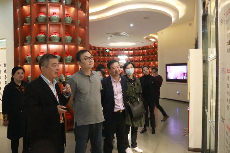 張若光一行參觀了酒文化博物館、名人酒窖、辛氏酒館、黨建文化館,對酒文化博物館內(nèi)基礎(chǔ)陳列、布展設(shè)備及其文化氛圍等方面表示認(rèn)可。張瑞向張若光一行介紹了黃鶴樓酒業(yè)黨建工作基本概況,他表示,黃鶴樓酒業(yè)堅(jiān)持黨建工作做實(shí)了就是生產(chǎn)力、做強(qiáng)了就是競爭力、做細(xì)了就是凝聚力的做法,始終高舉旗幟、奮勇前進(jìn),做到黨建立企、黨建興企、黨建穩(wěn)企。