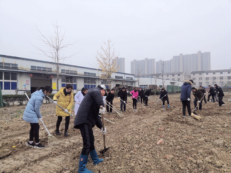 義務勞動中,黃鶴樓酒業(yè)黨委委員、隨州黨支部書記閔波平和大家一起分工合作,翻地、撒苗、培土,有條不紊。冬季天氣寒冷,大家卻汗?jié)褚律溃瑹崆楦邼q,以勞動為榮,樂在其中。