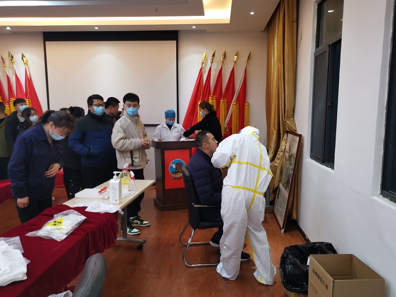 2月5—7日,公司工會邀請武漢市第五醫院檢測人員到廠區為員工進行核酸檢測。
