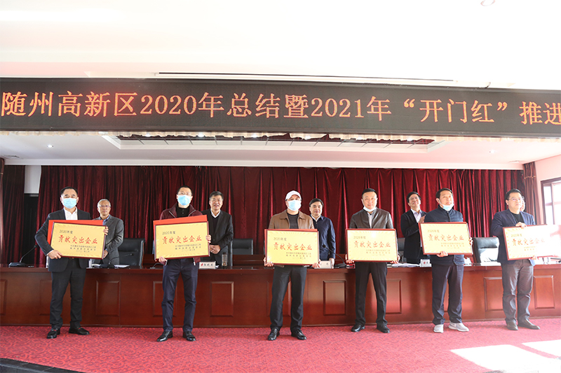 2月21日,隨州高新區召開2020年總結暨2021年“開門紅”推進會。會上,黃鶴樓酒業(隨州)有限公司、隨州君和商貿有限公司被授予“2020年度貢獻突出企業”榮譽稱號,并分別獲得10萬元和5萬元獎勵。