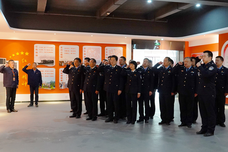 周文化一行重點參觀了黃鶴樓酒業黨建文化館,在館內重溫入黨誓詞后,回顧了中國共產黨百年崢嶸歲月,領悟了紅船精神等紅色精神,學習了國家安全相關知識。