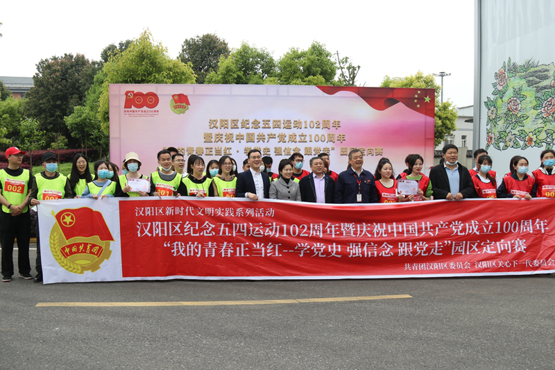 4月22日下午,由漢陽區關心下一代工作委員會、共青團漢陽區委員會、黃鶴樓酒業有限公司聯合主辦的紀念五四運動102周年暨慶祝中國共產黨成立100周年“我的青春正當紅——學黨史 強信念 跟黨走”園區定向賽在黃鶴樓酒文化博覽園開賽。區關工委主任李德祿、共青團漢陽區委員會書記何瓊,黃鶴樓酒業工會主席、黨工團中心副總監張瑞,工會副主席、人力資源中心總監助理張佳出席活動。