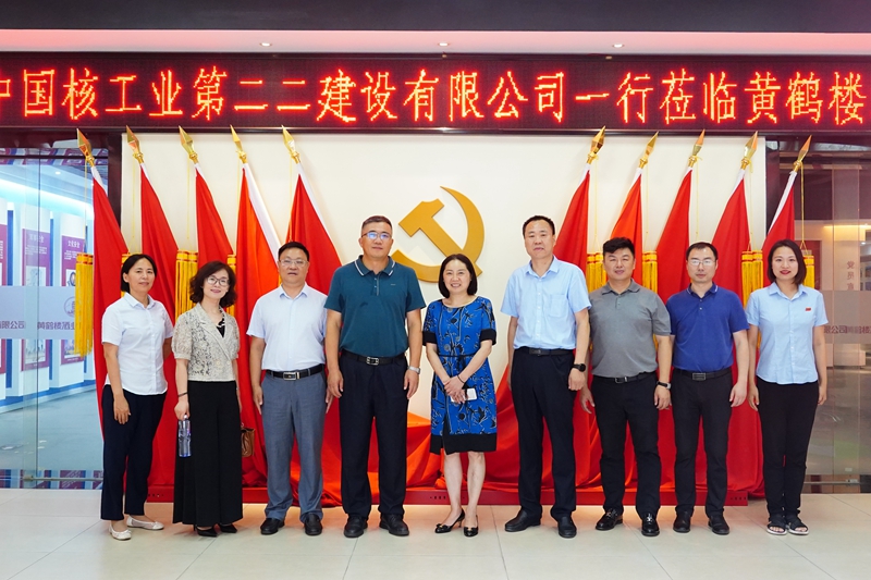 7月20日,中國核工業第二二建設有限公司黨委書記、董事長尤念軍,總會計師、董事會秘書趙洪迅,副總工程師方東一行調研黃鶴樓酒業,漢陽區江堤街道黨工委書記羅雙蘭、辦事處主任王華勇,武漢向陽物貿發展有限公司黨支部書記、董事長楊俊峰陪同調研,黃鶴樓酒業黨委書記、董事長許鵬,黨委副書記、副總經理、總會計師麻玉俠,黨委委員、總經理助理魏國接待來訪。
