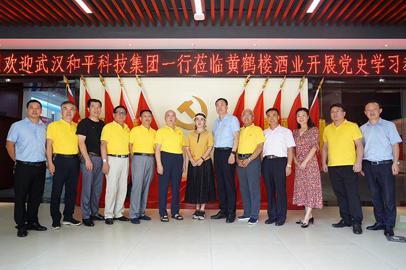 7月23日,武漢和平科技集團總裁黃海音,副總裁、工會主席甘國英,黨總支書記曹榮生帶領(lǐng)公司黨員、積極分子等50余人到黃鶴樓酒業(yè)開展黨史學習教育,黃鶴樓酒業(yè)黨委書記、董事長許鵬接待來訪。