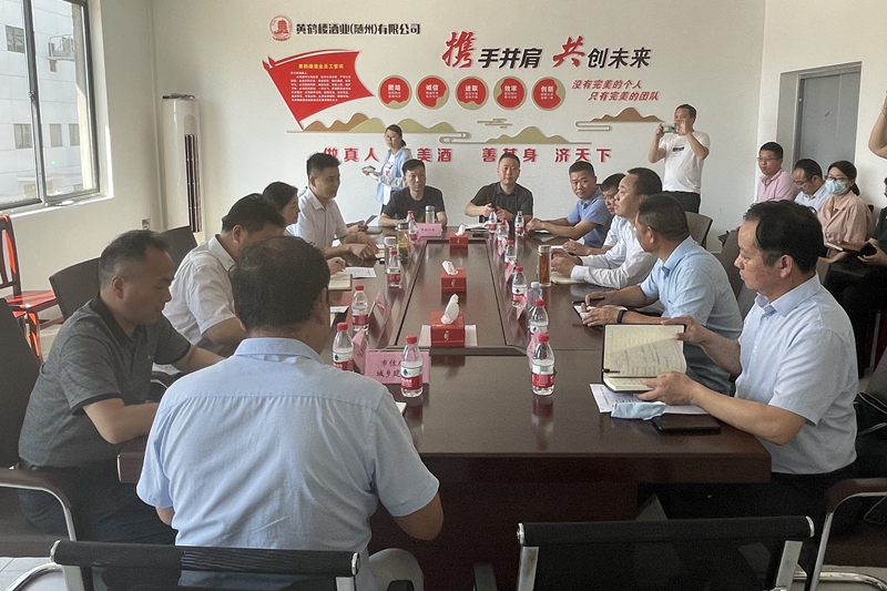 6月20日,隨州市政府副市長羅蘭,黨組成員劉軍偉,副秘書長汪興國帶領相關市直部門一行到黃鶴樓酒業(隨州)有限公司調研企業生產經營情況。公司黨委書記、董事長許鵬參加會議。