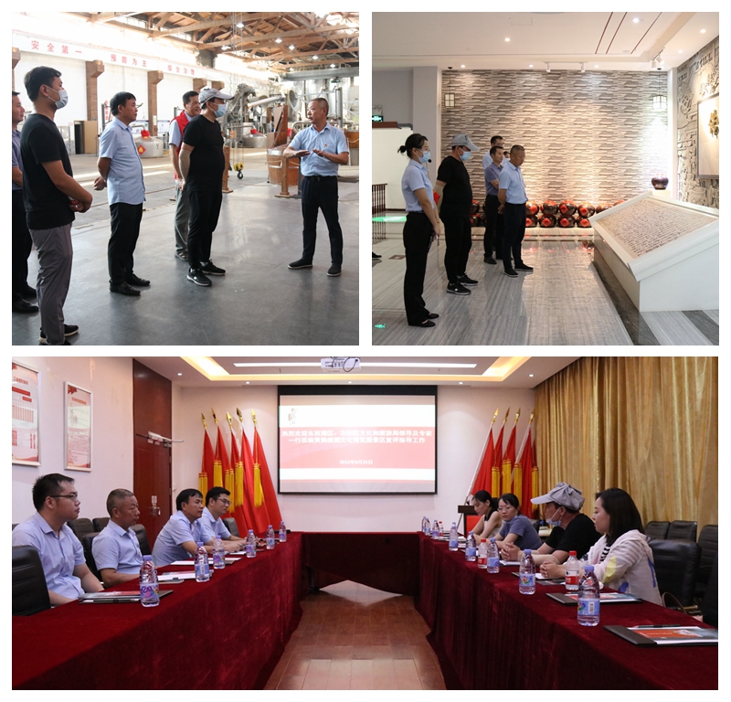 8月25日,黃鶴樓酒文化博覽園迎來景區年度復評工作。由武漢商學院旅游管理學院院長薛兵旺組成的專家小組到黃鶴樓酒文化博覽園開展景區復評工作,公司黨委委員、副總經理魏國,黨委委員、釀造管理中心總監孫培彬參加活動。