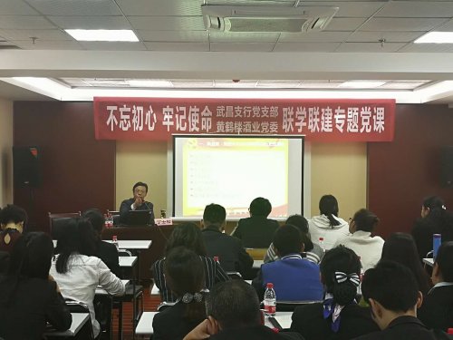 11月7日,交通銀行武昌支行黨支部與黃鶴樓酒業黨委開展了“不忘初心 牢記使命”聯學聯建專題黨課,黨課在武昌中南路交通銀行七樓會議室進行,黃鶴樓酒業黨委副書記、副總經理麻玉俠,黨委組織委員許鳳娥,交通銀行武昌支行行長曹蔚云參加黨課學習。