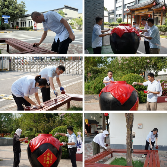 刷漆活動中,大家不懼高溫、不畏酷暑,對廠區內景觀凳、景觀酒壇等進行打磨刷漆、翻新維護,想在前、做在前、干在前,深刻踐行公司“三個人人”行為理念。