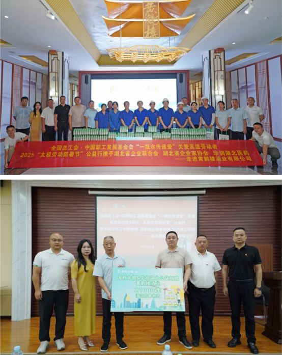 捐贈(zèng)儀式上,國(guó)藥太極和華潤(rùn)湖北醫(yī)藥向黃鶴樓酒業(yè)一線員工捐贈(zèng)了價(jià)值21000元的防暑物資,并叮囑一線員工在工作中注意夏日健康防暑。