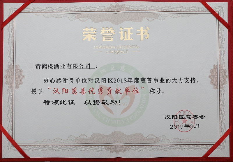黃鶴樓酒業榮獲“漢陽慈善優秀貢獻單位”稱號