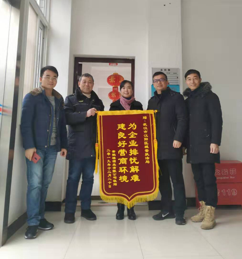 據了解,日前公司為感謝漢陽區城管局對公司的幫助和支持還曾贈送錦旗。